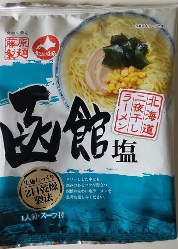 インスタントラーメン 713袋目は、 北海道二夜干しラーメン 函館 塩 藤原製麺株式会社 賞味期限2021.09.07(令和3年) 712袋目に続く藤原製麺さんの北海道二夜干しシリーズの一品。日清食品さんも北海道のシリーズを出していたが、旭川は醤油、函館は塩、札…